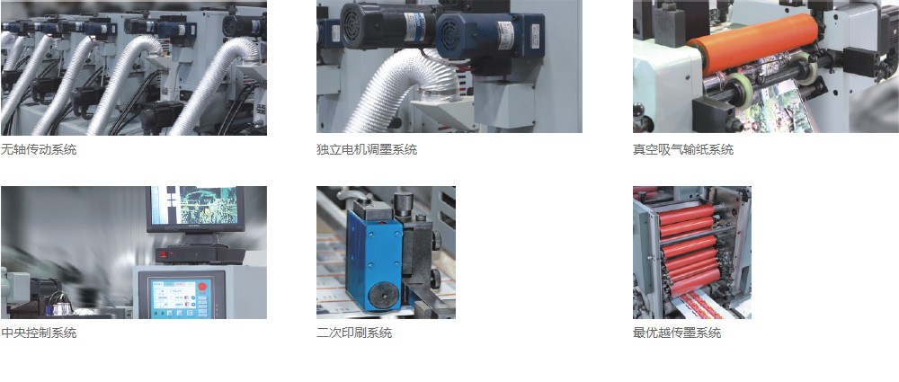 采用無軸控制系統(tǒng),精確控制驅(qū)動印刷機(jī)組的每個滾筒的伺服馬達(dá),而實(shí)現(xiàn)對機(jī)器狀態(tài)的優(yōu)化控制。